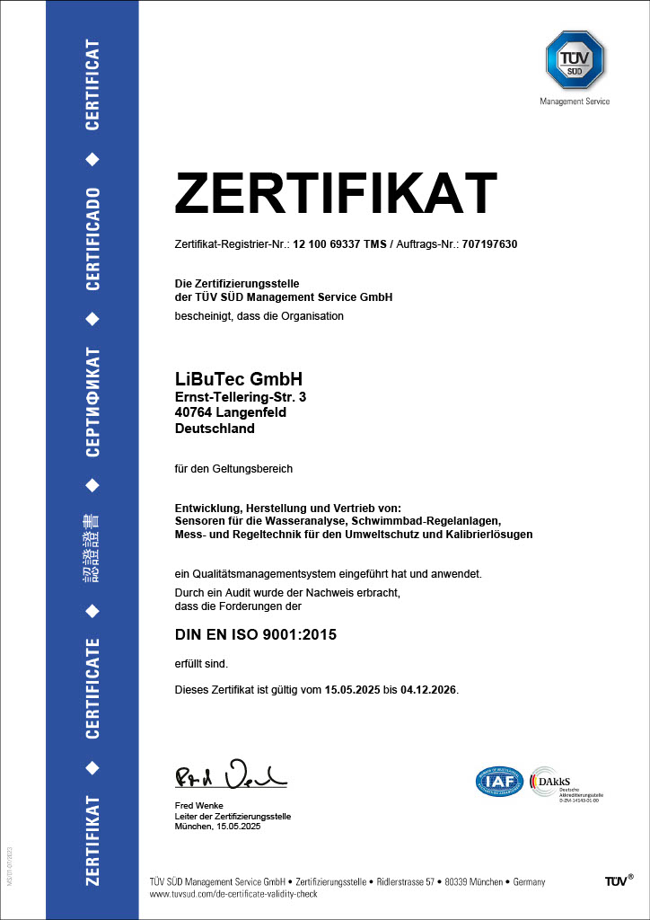 Die Gültigkeit unserer Zertifizierung wird durch den TÜV SÜD überwacht.